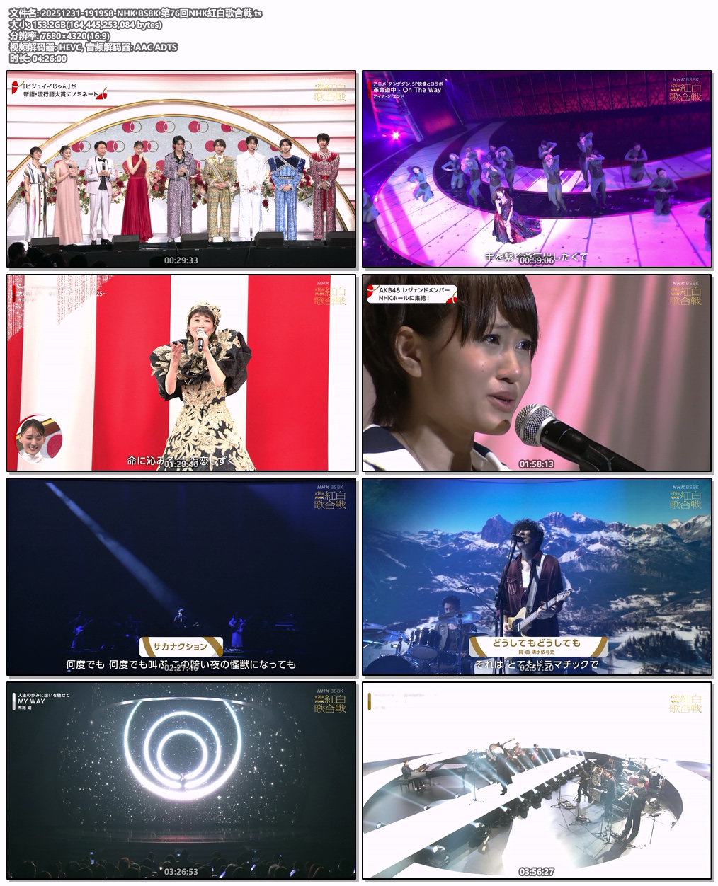 あんぱん特別編&RAD▽Perfume休止前ラスト▽氷川ひばり名曲▽郷ラスト紅白▽デビュー60年布施・50年宏美・40年TUBE・久保田▽LiSA×鬼滅▽さゆり×N響▽AKB卒業メンバーもアンパンマンも大集合▽けん玉三山ドミノ水森▽堺正章バックナンバー星野源キンプリちゃんみなHANA幾田りらVaundyナンバーアイあいみょんSixTONES▽審査はカズ・野沢雅子・松嶋菜々子・仲野太賀・髙石あかり他