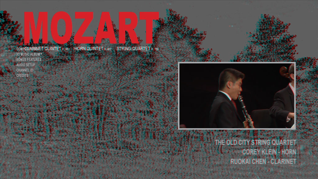 AIX Records于2010年6月摄制的3D音乐专辑™之一,由2010年费肖夫室内乐比赛(Fischoff Chamber Music Competition)冠军 — 老城弦乐四重奏演奏。这个年轻的乐团由费城著名的柯蒂斯音乐学院的应届学生组成 - 在柯蒂斯音乐学院全额奖学金学习。他们的青春与活力在这部开创性的3D作品中被精彩捕捉。这是最早的经典蓝光3D项目之一。四重奏的成员包括同班同学、单簧管手陈若凯和圆号手科里·克莱因。他们参与了著名的单簧管五重奏和圆号五重奏的演奏。