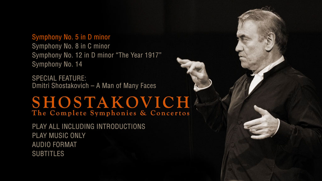 SPECIAL FEATURES: The Shostakovich Cycle includes introductions for each symphony and concerto by Valery Gergiev. The fascinating documentary “Dmitri Shostakovich – A Man of Many Faces” explores the life and work of the composer based on rare archive footage and interviews. A comprehensive book with particularised texts about each symphony and concerto provides deep insights into life and work of Dmitri Shostakovich. And the Play Music Only Function is available to experience Shostakovich’s wonderful music nonstop!