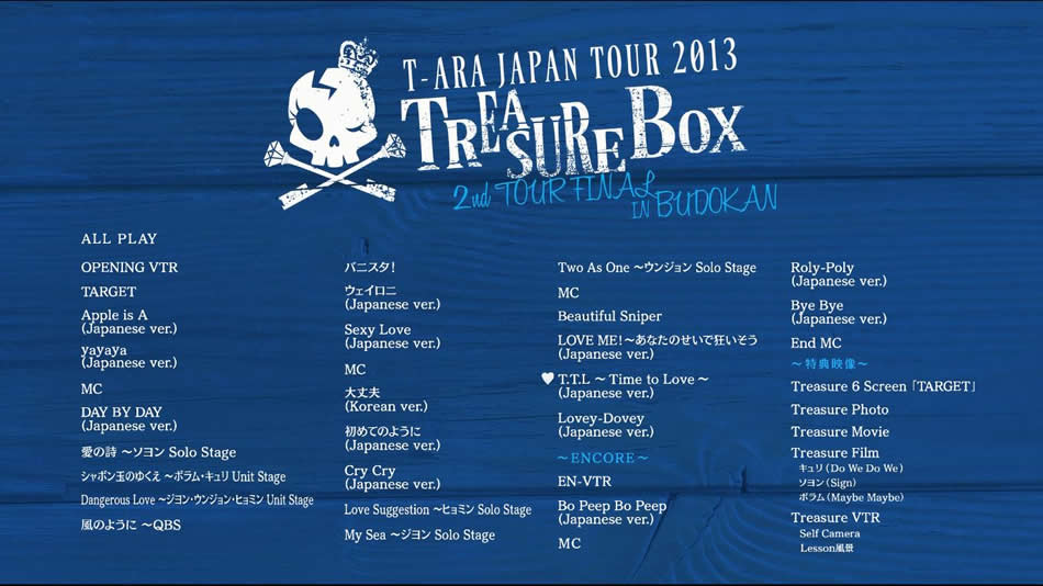 英文片名:T-ARA JAPAN TOUR 2013~TREASURE BOX~ 2nd TOUR FINAL IN Budokan